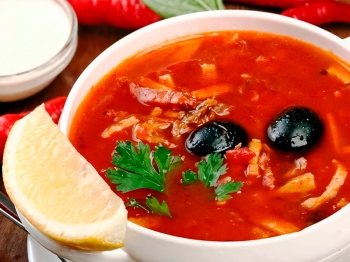 говядина, салями, ветчина, огурцы маринованные, лук, сметана, лимон, маслины, томаты