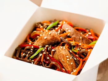 говядина, лапша гречневая, цукини, перец болгарский, морковь, шампиньоны, кунжут, соус сладкий чили